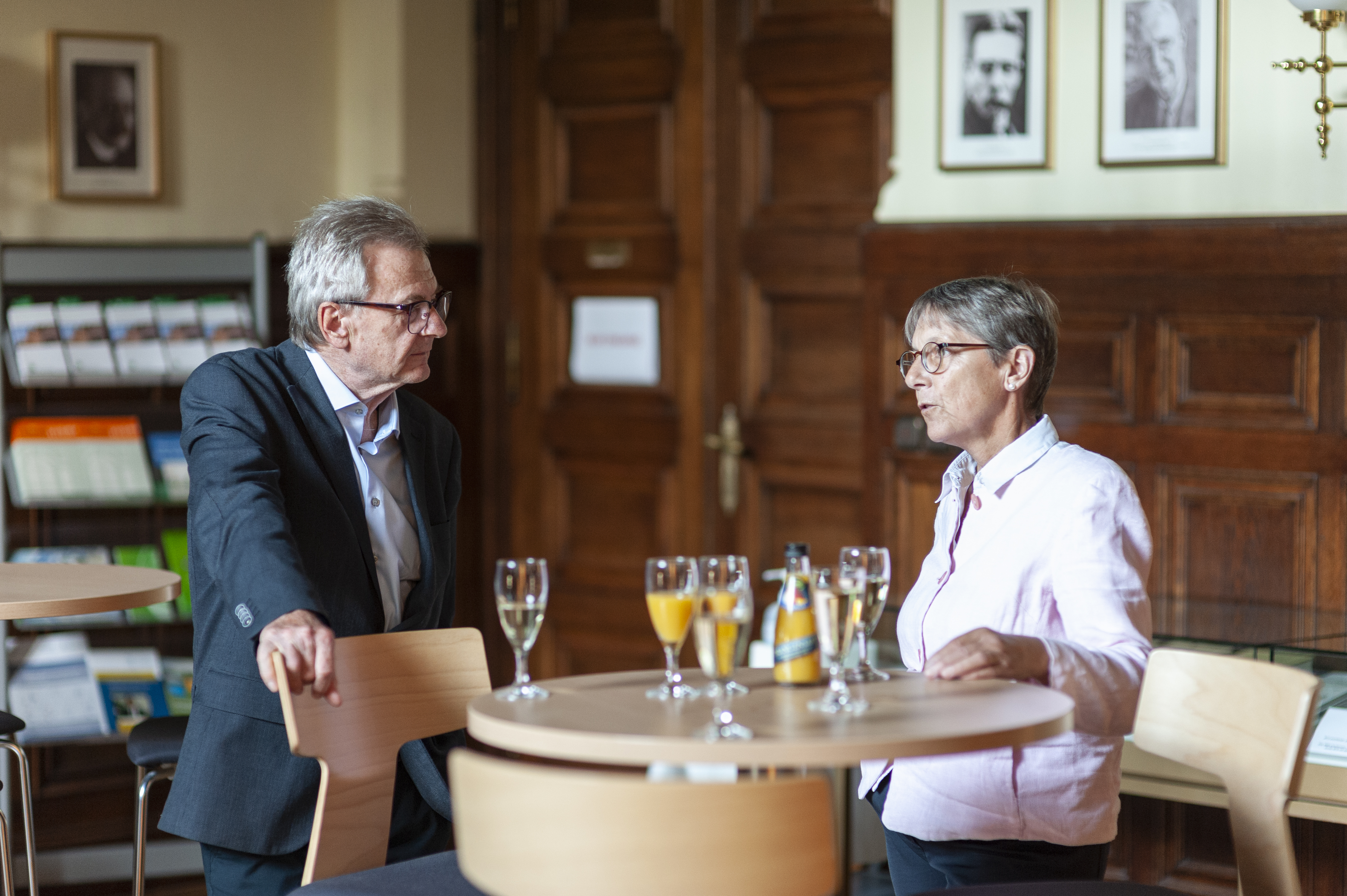 Akademie-Präsident Prof. Dr. Hans Wiesmeth und Staatssekretärin Andrea Franke , Sächsisches Staatsministerium für Wissenschaft, Kultur und Tourismus, im Gespräch. Foto: Marcus Karsten