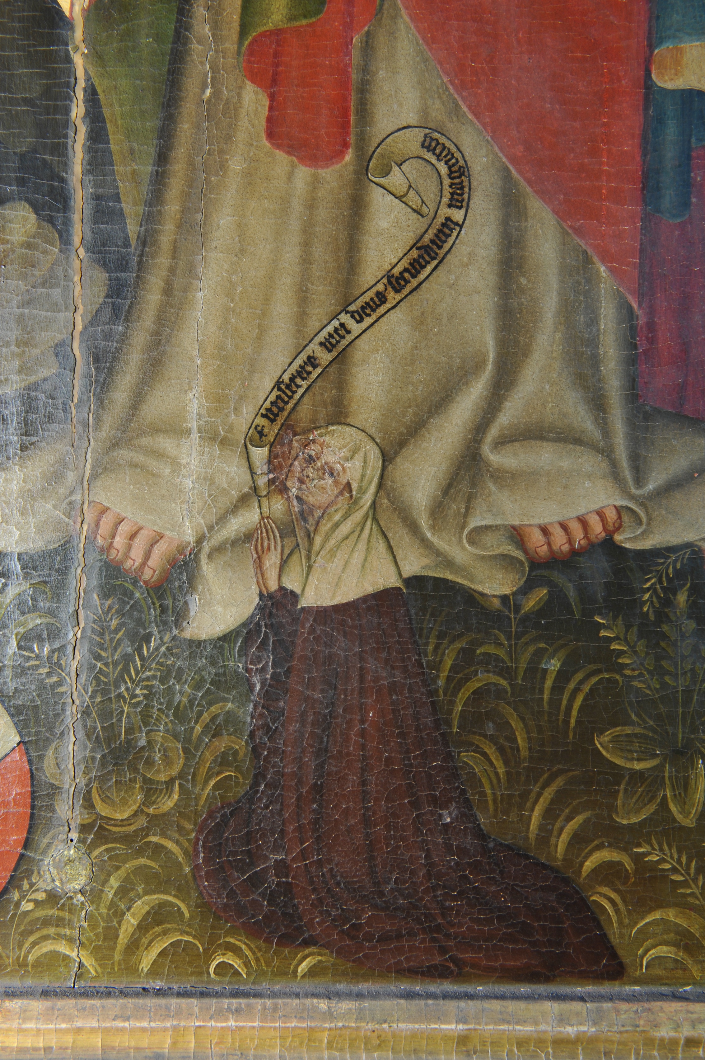 Halberstadt, Liebfrauen, Altarretabel Barbarakapelle, Detail Stifterin, um 1420-1430