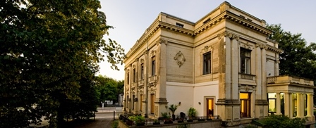 Historische Villa von hinten, links im Bild steht ein Baum