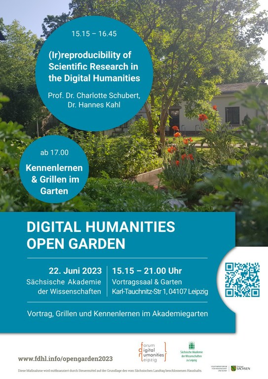 Am 22. Juni 2023 lädt das Team des Forum Digital Humanities Leipzig (FDHL) herzlich zu Vortrag und Kennenlern-Grillen im Akademie-Garten ein. Die Veranstaltung bietet Gelegenheit, sich mit anderen interessierten Vertreterinnen und Vertretern der digitalen Geisteswissenschaften in Leipzig auszutauschen und zu vernetzen.