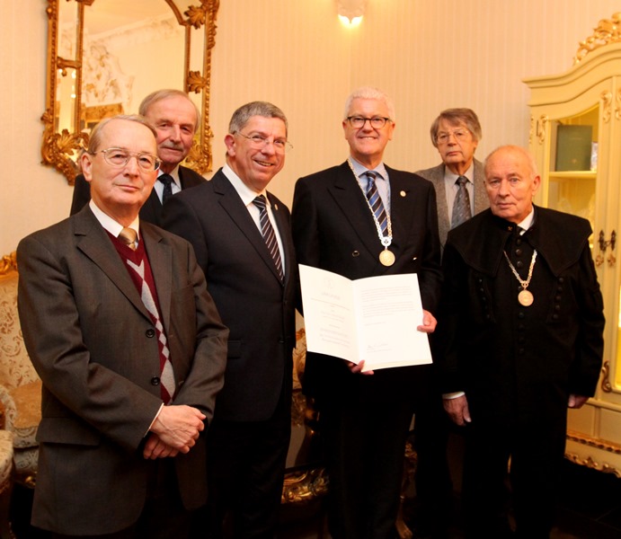 Am 24. November hat die TU Bergakademie Freiberg Prof. Dr. Ulrich Groß die Würde eines Ehrensenators verliehen. Damit ehrt die Universität seine Verdienste um die Pflege der Wissenschaft und Bildung an der TU Bergakademie Freiberg. Ulrich Groß kam 1992 als Professor für Technische Thermodynamik aus Stuttgart in die Bergstadt, seit 1996 ist er Direktor des Instituts für Wärmetechnik und Thermodynamik.