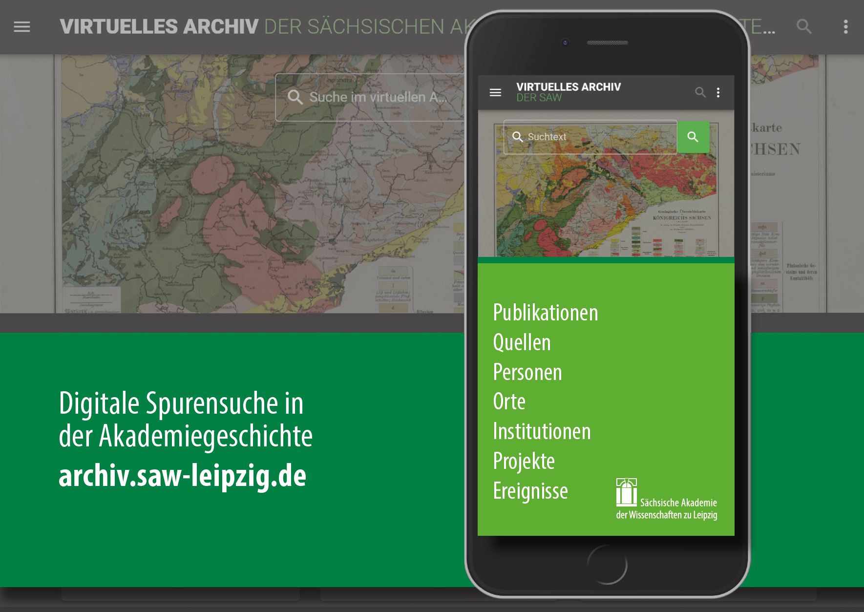 Digitale Spurensuche in der Akademiegeschichte: Unter archiv.saw-leipzig.de können interessierte Nutzer in die Akademiegeschichte eintauchen. Ziel ist es, das im 2. Weltkrieg 1943 bei einem Bombenangriff verloren gegangene Archiv der Akademie virtuell wiedererstehen zu lassen. Die dazu neu entwickelte Datenbank vereint zahlreiche Quellen wie Briefe, Urkunden oder Fotos und ist darüber hinaus mit zahlreichen anderen Projekten, Archiven und Bibliotheken weltweit verlinkt.