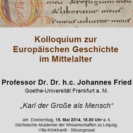 Die Veranstalter des Kolloquiums zur Europäischen Geschichte im Mittelalter laden am Donnerstag, den 15. Mai zum öffentlichen Abendvortrag von Prof. Dr. Johannes Fried in die Sächsische Akademie der Wissenschaften zu Leipzig ein. Beginn ist um 18.15 Uhr in der Karl-Tauchnitz-Str. 1, 04107 Leipzig. Der Eintritt ist frei.