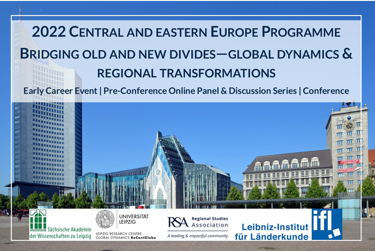 Vom 14. bis 17. September 2022 findet in Leipzig die RSA Central and Eastern Europe Conference "Bridging Old and New Divides: Global Dynamics, Regional Transformation" statt. Die Konferenz wird ausgerichtet von der Regional Studies Association (RSA) mit Sitz an der University of Sussex (UK) und findet in Kooperation mit dem Leibniz-Institut für Länderkunde, dem Research Centre Global Dynamics der Universität Leipzig und der Sächsischen Akademie der Wissenschaften zu Leipzig statt.