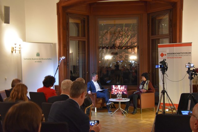 Am 24. Januar 2020 war Dr. Eva-Maria Stange zu Gast in der Sächsischen Akademie der Wissenschaften zu Leipzig, um nach dem Ende ihrer Amtszeit als Staatsministerin für Wissenschaft und Kunst im Freistaat Sachsen noch einmal Rückschau zu halten, Bilanz zu ziehen und Aufgaben und Chancen für die Wissenschaftspolitik der Zukunft zu formulieren. Die Veranstaltung wurde ausgerichtet in Kooperation mit dem Wissenschaftsforum der Sozialdemokratie.