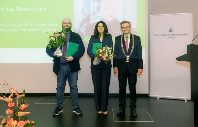 Es folgte die Verleihung der Wilhelm-Ostwald-Medaille an Prof. Dr. Claudia Felser und Prof. Dr. Jochen R. Guck sowie die Aufnahme neuer Akademiemitglieder. Als neues Mitglied in das Junge Forum der Akademie wurde PD Dr. phil. habil. Jörg Sonntag aufgenommen. Als neue Ordentliche Mitglieder der Technikwissenschaftlichen Klasse begrüßte der Akademiepräsident Prof. Dr.-Ing. Thorsten Halle sowie Prof. Dr.-Ing. habil. Sanaz Mostaghim und neues Korrespondierendes Mitglied in der Mathematisch-naturwissenschaftliche Klasse wurde Prof. Dr. Yuping Wu.