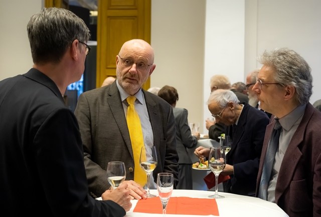 Im Anschluss hielt Akademiemitglied Prof. Dr. Norbert Frei den Festvortrag zum Thema "Ein deutscher Katechismus? Anmerkungen zur postkolonialen Kritik am Umgang mit der NS-Vergangenheit". Bevor der Akademiepräsident alle Anwesenden zu einem kleinen Empfang einlud, stand ein weiterer Höhepunkt auf dem Programm: Die Premiere des Projektfilms über das Althochdeutsche Wörterbuch, den man hier anschauen kann: youtu.be/mDwsv9VJBJE.