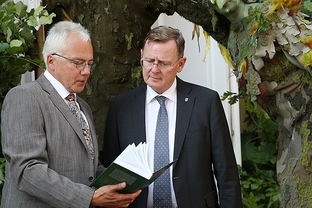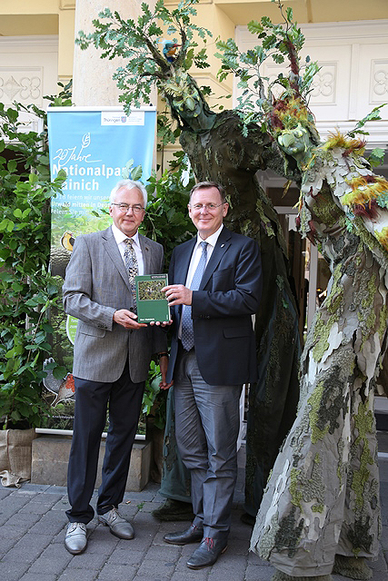 Der Thüringer Ministerin für Umwelt, Energie und Naturschutz, Anja Siegesmund, und dem Ministerpräsidenten des Freistaats Thüringen, Bodo Ramelow, wurde am 30. Mai 2018 in Erfurt von Manfred Großmann, dem Leiter der Nationalparkverwaltung Hainich, der Band 77 der Reihe „Landschaften in Deutschland“ feierlich überreicht.
