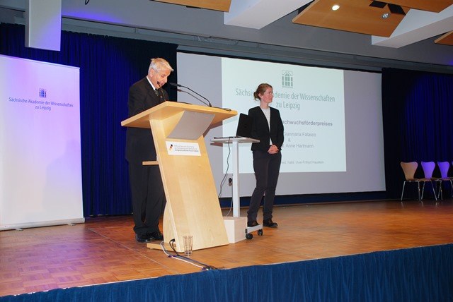 Die diesjährigen Preisträger des Nachwuchsförderpreises des Fördervereins der Akademie waren Dr. rer. nat. Gianmaria Falasco, der mit einer Arbeit zum Thema »Four out-of-equilibrium stories« im Themenfeld der Ausbreitungstheorien promovierte, und Dr. rer. nat. Anne Hartmann mit einer Dissertation zum Thema »Charakterisierung und Monitoring des Phyto- und Bakterioplanktons der Talsperre Saidenbach«. Die Laudationen wurden von Prof. Dr. Uwe-Frithjof Haustein, Vorsitzender des Fördervereins, gehalten.