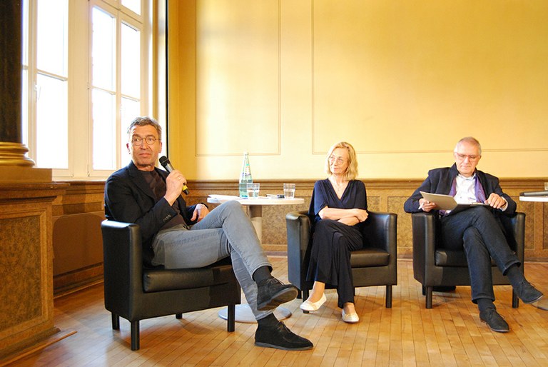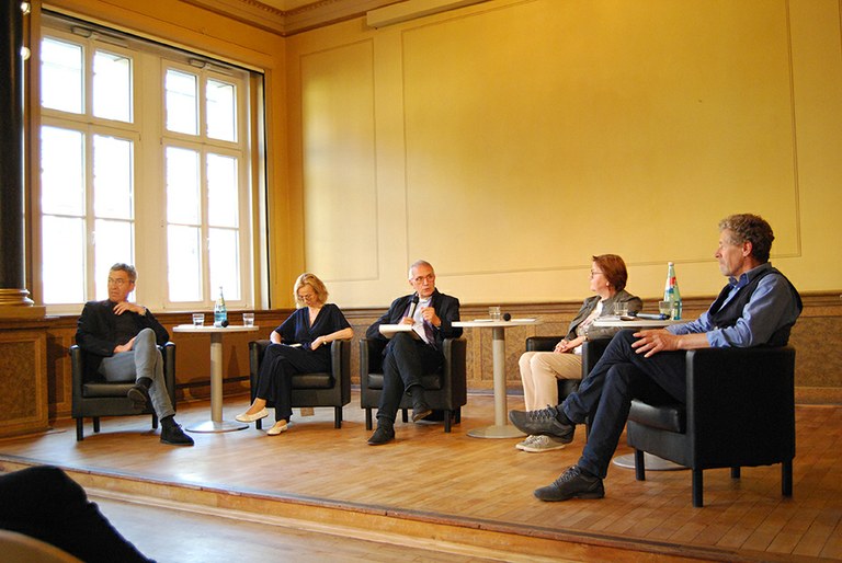 Gemeinsam mit Leipzigs Bürgermeister für Stadtentwicklung und Bau, Thomas Dienberg, diskutierten am 15. Mai zur Ausstellungseröffnung Expertinnen und Experten über die Frage: Wie kann man eine Stadt wie Leipzig fit für die Zukunft machen?. Es moderierte Akademiemitglied Prof. Dr. Bernhard Müller, Seniorprofessor an der Fakultät Umweltwissenschaften der TU Dresden und Vorsitzender der Kommission Landeskunde der Sächsischen Akademie der Wissenschaften zu Leipzig.