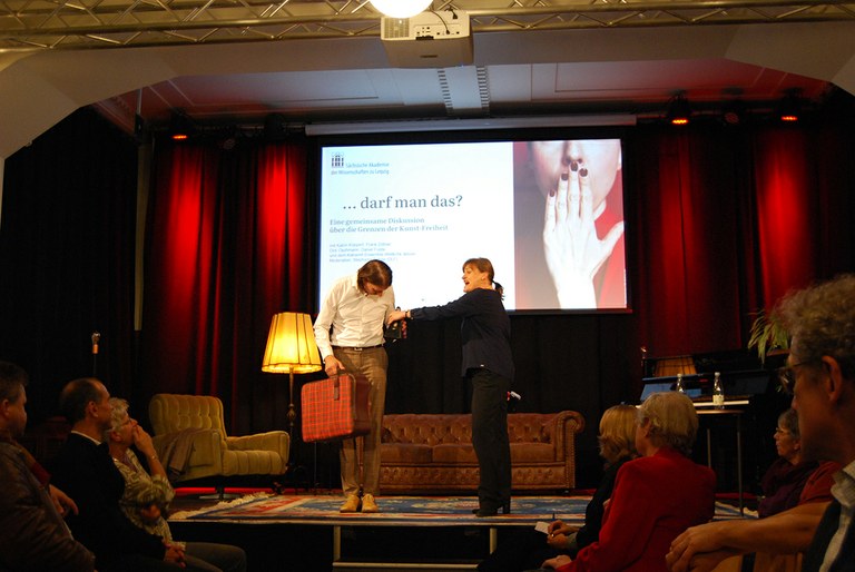 Am 21. Oktober 2024 haben wir im Wissenschaftsjahr 2024 – Freiheit zu einer interaktiven Diskussion über die Grenzen der Kunstfreiheit in den Kupfersaal Leipzig eingeladen. Kooperationspartner war die Leipziger Lachmesse.